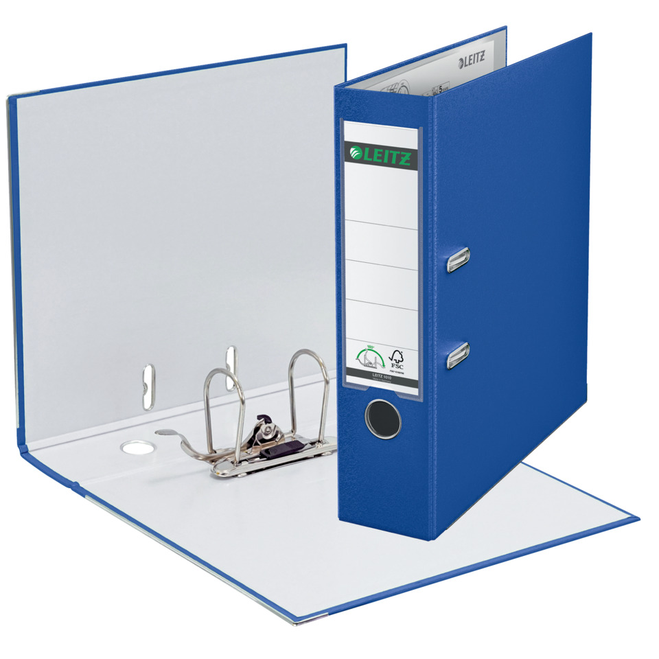 Leitz Qualitäts-Ordner Plastik breit. Äußerst widerstandsfähiger und schmutzabweisender Einband aus 30% vor Gebrauch recycelter PP-Folie außen und PE-laminiertem Papier auf der Innenseite auf stabilem, zu 90% recyceltem Karton für längere Lebensdauer. Mit patentierter 180°-Präzisionsmechanik für 50% weiteres Öffnen und 20% schnelleres Arbeiten. Mit Schlitzen, Griffloch und Kantenschutz. Mit Sichttasche (PP) am Rücken. Mit auswechselbarem Rückenschild. Für bis zu 600 Blatt (80 g/qm). Material: Einband aus 90% recyceltem Karton, mit 30% vor Gebrauch recycelter Polypropylen-Folie kaschiert, innen Polyethylen-beschichtetes Papier. Format: für DIN A4, 285 x 318 mm, Rückenbreite: 80 mm. Für bis zu 600 Blatt (80 g/qm). 5 Jahre Garantie auf die Mechanik. GS-geprüft. Farbe: nachtblau.