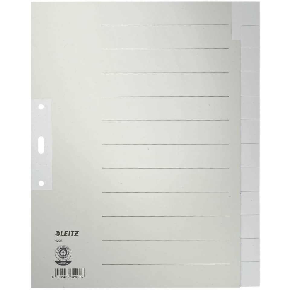 Papierregister Blanko, A4, Überbreite. Mit Lochverstärkung des 1. Blattes und Tabenverstärkung, mit Liniendruck auf dem 1. Blatt und 8 cm Lochung. Material: Tauenpapier 100 g/qm (RC). Blattanzahl: 12. Format: 240 x 300 mm. Farbe: grau.