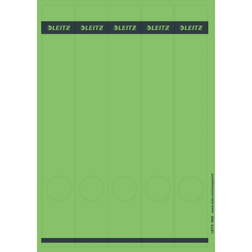 Rückenschild, selbstklebend, lang, schmal, PC-beschriftbar, auf A4-Papier, für Standard- und Hartpappe-Ordner, mit Griffloch, hohe Deck- und Klebekraft, mit Greifrand, für Laser-, Tintenstrahldrucker und Kopiergeräte, lösungsmittelfrei. Material: Papier. Format: 39 x 285 mm. Inhalt: 125 Stück. Farbe: grün.