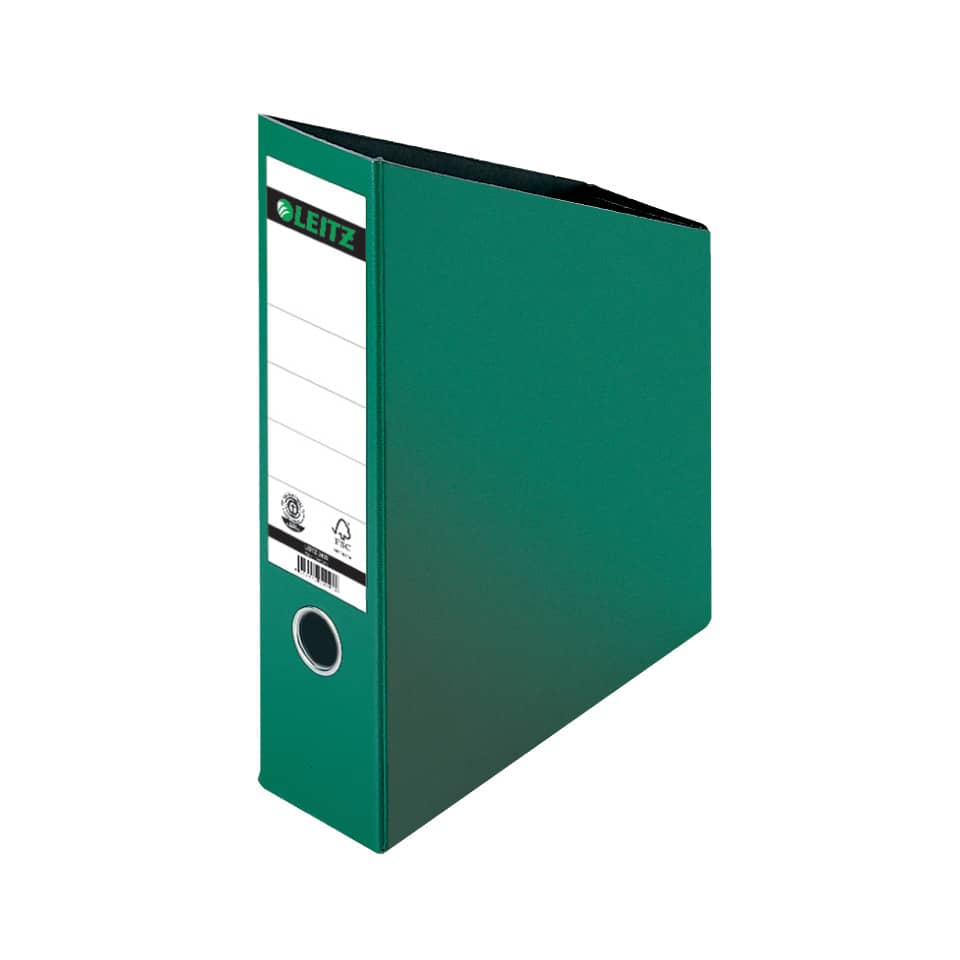 Stehsammler, A4, besonders stabil und standfest, mit großem, aufgeklebtem Rückenschild mit Griffloch. Material: Hartpappe (RC), Rohstoff zur Herstellung aus verantwortungsvoller, nachhaltiger Forstwirtschaft. Füllvermögen: 76 mm. Format: 80 x 320/200 x 245 mm. Farbe: grün.
