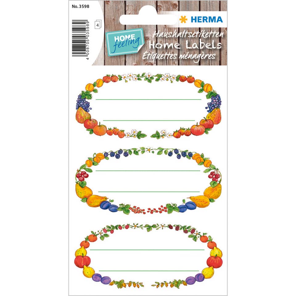 Selbstklebende, bunt bedruckte Küchenetiketten aus Papier. Zum Kennzeichnen und Beschriften von Speisen und Getränken oder zur Beschriftung von Gewürzdosen.