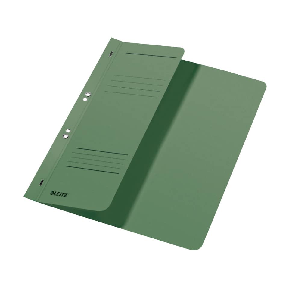 Ösenhefter, halber Vorderdeckel, 9 cm breit. Für kaufmännische Heftung, mit Organisationsdruck. Mit 8-cm-Lochung, geöst. Material: Manilakarton (RC) 250 g/qm. Format: für A4, 238 x 305 mm. Farbe: grün.