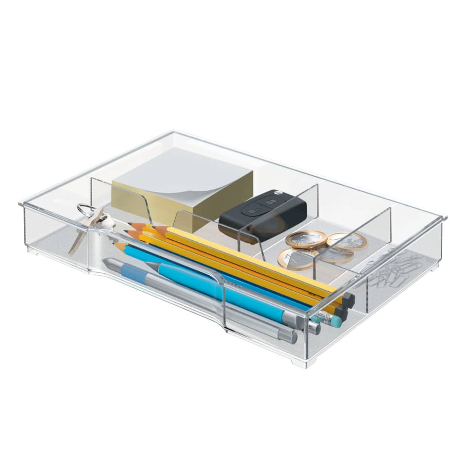 Leitz Schubladeneinsatz, für Schubladenboxen CUBE, PLUS und WOW CUBE. In die schmalen Schubladen paßt ein Einsatz, in die breiten Schubladen passen 2 Einsätze übereinander, kleine Füßchen fixieren die Einsätze in den dafür vorgesehen Einbuchtungen der Schubladen. 4 Fächer mit eingravierten Aufbewahrungssymbolen. Material: Polystyrol. Format: 167 x 35 x 247 mm, für A4. Farbe: glasklar.