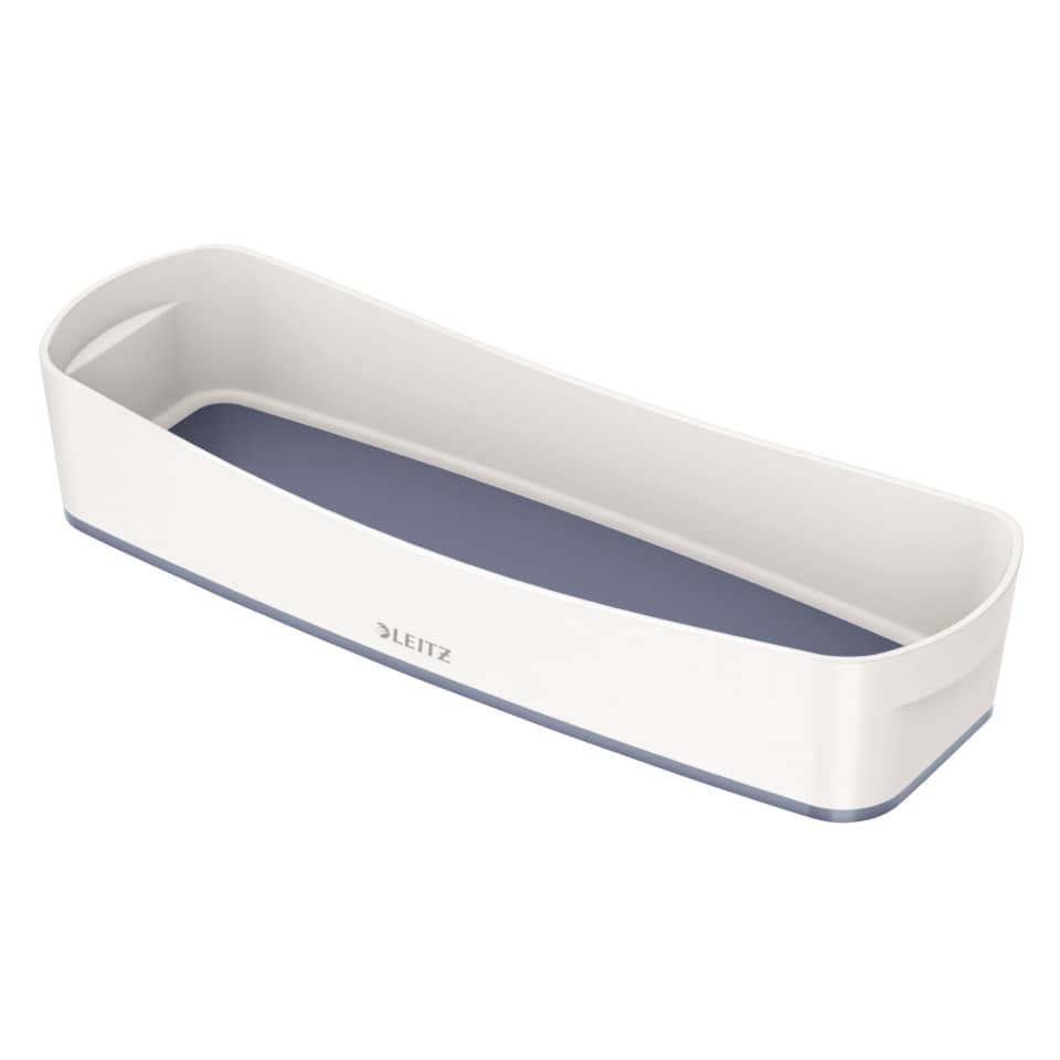 Leitz Aufbewahrungsschale MyBox WOW, länglich. Zur Aufbewahrung kleinerer Utensilien oder zum Einsetzen in die Aufbewahrungsboxen MyBox WOW Klein und Mittel. Mit weichen, abgerundeten Ecken für eine einfache Reinigung. Konische Form für platzsparendes Transportieren. Bei Nichtgebrauch platzsparend ineinander stapelbar. Mit Zweifarbeneffekt: weiße Hochglanzoptik, Boden in attraktiver Farbe. Robust, kratzfest und wasserdicht. Modularer Aufbau zur besseren Organisation und für maximale Flexibilität: kombinierbar mit den Aufbewahrungsboxen MyBox WOW. Material: hochwertiger ABS-Kunststoff (ohne Bisphenol A / BPA), für den Kontakt mit Lebensmitteln geeignet. Format: 307 x 55 x 105 mm. Farbe: weiß/grau.