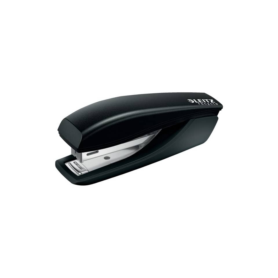 Leitz Mini Heftgerät NeXXt Recycle. Hergestellt aus 81% recyceltem Kunststoff, 100% recycelbar, da es mit Hilfe eines Schraubendreher vollständig in die verschiedenen Materialtypen zerlegt werden kann. Mit Oberlademechanik. Für geschlossene Heftung. Mit Tackerfunktion. Mit integriertem Entklammerer. Mit Direct Impact Technology (DIT) für perfektes und problemloses Heften. Kunststofffreie Verpackung aus 100% recyceltem Karton, vollständig recycelbar. Heftleistung: 1 mm/10 Blatt. Heftklammern: 100 x P2, Nr. 10. Einlegetiefe: 35 mm. Material: 81% recycelter Kunststoff, Metall. 3 Jahre Garantie nur bei Verwendung von Leitz Heftklammern, GS-geprüft. Farbe: schwarz.