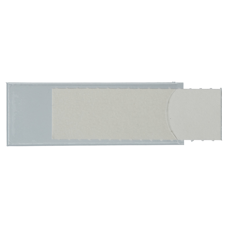 Sichtfenster Uni-Schildchen. Selbstklebende Kunststofftasche mit auswechselbarem Blanko-Schildchen 2465. Zur Beschriftung von Briefkörben 5221, 5223, 5224, 5225, 5226, 5227, Serie 18 Hängeregistratur, Hänge-Leitkarte 1827 und Fehltasche 1829. Material: PVC-Weichfolie. Format: 53 x 19 mm. Inhalt: 50 Stück. Farbe: transparent.