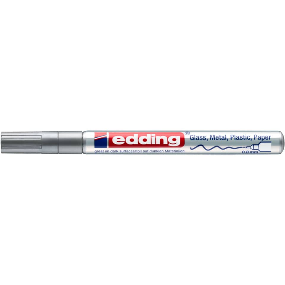 Glanzlackmarker für stark deckendes, permanentes und wischbeständiges Gestalten auf glatten Flächen (Glas, Metall, Kunststoff, Papier), aber auch für dunkle und transparente Materialien geeignet. Die metallgefasste Kunststoffspitze verfügt über eine Strichbreite von 0,8 mm. Die lackähnliche Pigmenttinte trocknet schnell, ist witterungs- und extrem lichtbeständig, geruchsarm sowie abriebbeständig. Passende Ersatzspitzen (edding 780 Ersatzspitzen) sind erhältlich. Die Tinte ist geruchsarm und ohne Zusatz von Toluol/Xylol. Hochwertiger Aluminiumschaft.