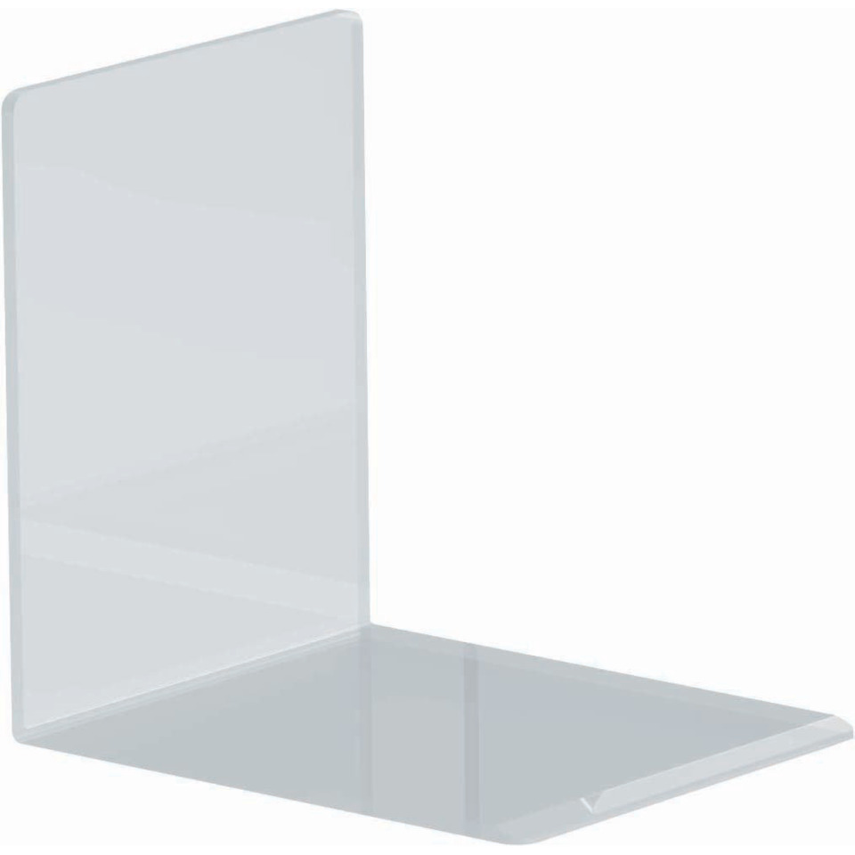 Buchstütze Acryl. Ausführung: Acryl, gespritzt, 2,5 mm. Belastbarkeit: Standard. Kratzfeste, glatte Kanten. Hochwertige Glanz-Oberfläche, abgeschrägte Kanten erleichtern das Unterschieben der Buchstütze. Größe (B x H x T): 80 x 100 x 100 mm. Farbe: glasklar.