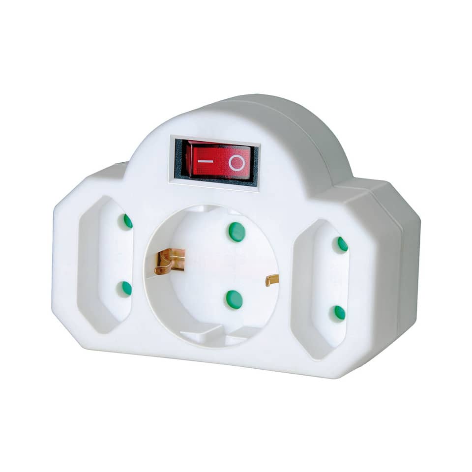 Der Adapterstecker von Brennenstuhl mit zwei Euro-Steckdosen und einer Schutzkontakt-Steckdose in der Farbe weiß mit Schalter zum Ein und Ausschalten für die Steckdose besticht durch seine Qualität und Sicherheit in allen Bereichen. Er verfügt nicht nur über einen erhöhten Berührungsschutz sondern besticht außerdem durch folgende Eigenschaften: Auf 2 Euro-Steckdosen und 1 Schutzkontakt-Steckdose. Mit beleuchtetem Ein/Aus Schalter einpolig. Steckdosen mit erhöhtem Berührungsschutz. Farbe: weiß. Stecksystem DE.