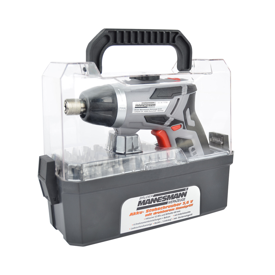 Mit seiner leistungsstarken 3,6 V Lithium-Ionen-Batterie und dem mitgelieferten Sortiment von 52 Bits und Bithalter hast du alles, was du brauchst, um jedes Projekt zu meistern. Die 6 Drehmomenteinstellungen ermöglichen präzises Arbeiten und verhindern das Überdrehen der Schrauben. Der dehnbare Handgriff verwandelt den Akkuschrauber von einer Pistole zu einem Stabschrauber, so dass du auch an schwer erreichbaren Stellen problemlos schrauben kannst. Und dank der integrierten Arbeitsleuchte am Griffende behältst du immer den Überblick, selbst in dunklen Ecken. Die Ladezustandsanzeige informiert dich stets über den aktuellen Batteriestand, und mit dem mitgelieferten Steckernetzgerät kannst du den Akkuschrauber jederzeit schnell aufladen. Klein und handlich passt er in jede Werkzeugkiste und ist immer griffbereit.