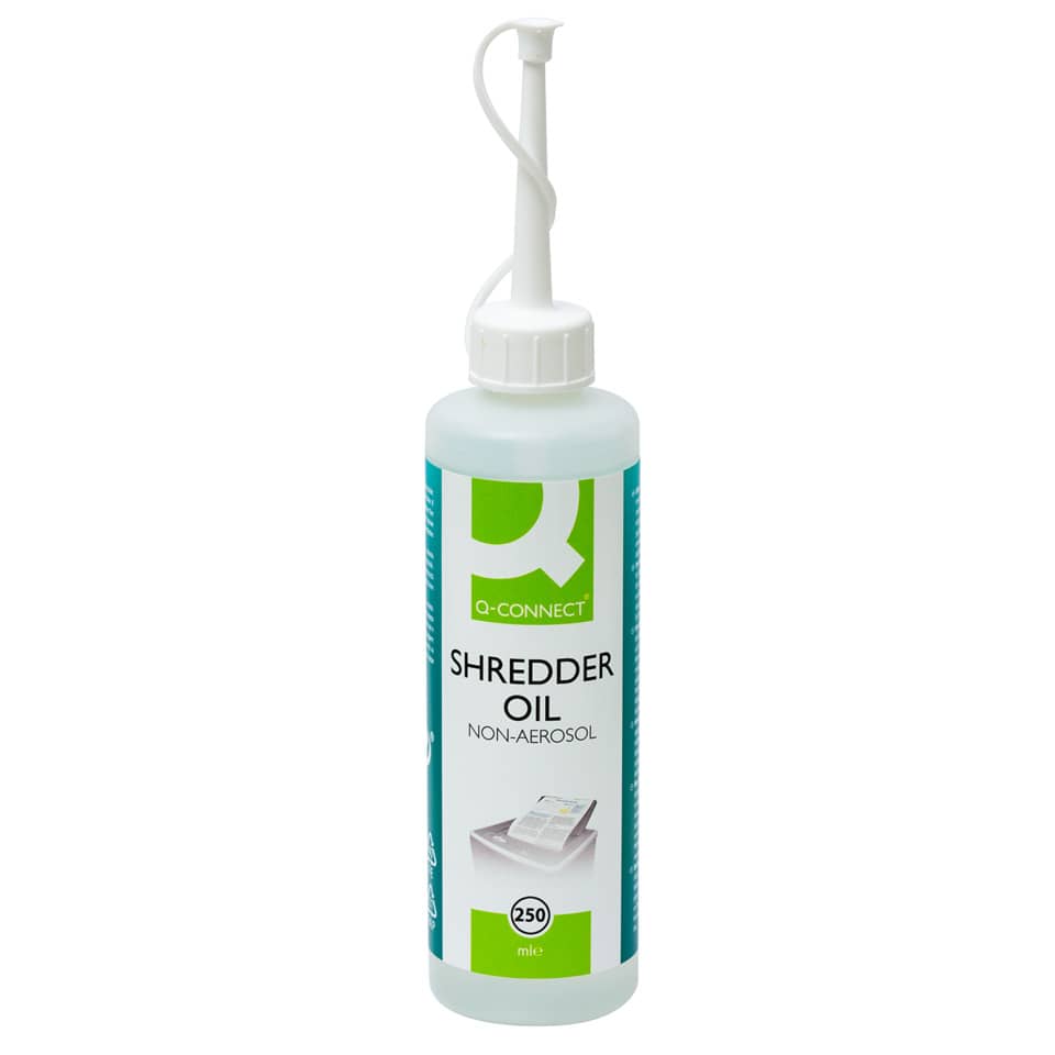 Spezialöl. Schmier- und Reinigungsöl für den Einsatz bei Aktenvernichtern. Die Schneidwerke sollen idealerweise nach jeder Schnittgutentleerung mit diesem Öl geschmiert werden. Reduziert die Servicekosten und Gerät-Geräusch. Farb- und geruchslos. Biologisch abbaubar. Nur für Geräte mit Partikelschnitt verwendbar. 250 ml