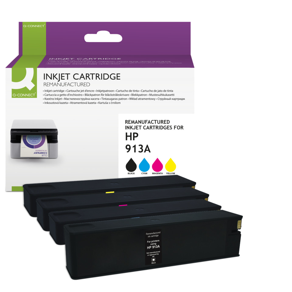 Produkttyp: Alternativ rebuild, Produktart: Tintenpatrone, VE: 4 Stück, Ersetzt: 913A (F6T77AE) | 913A (F6T78AE) | 913A (F6T79AE) | 913A (L0R95AE), Farbe: schwarz cyan magenta gelb