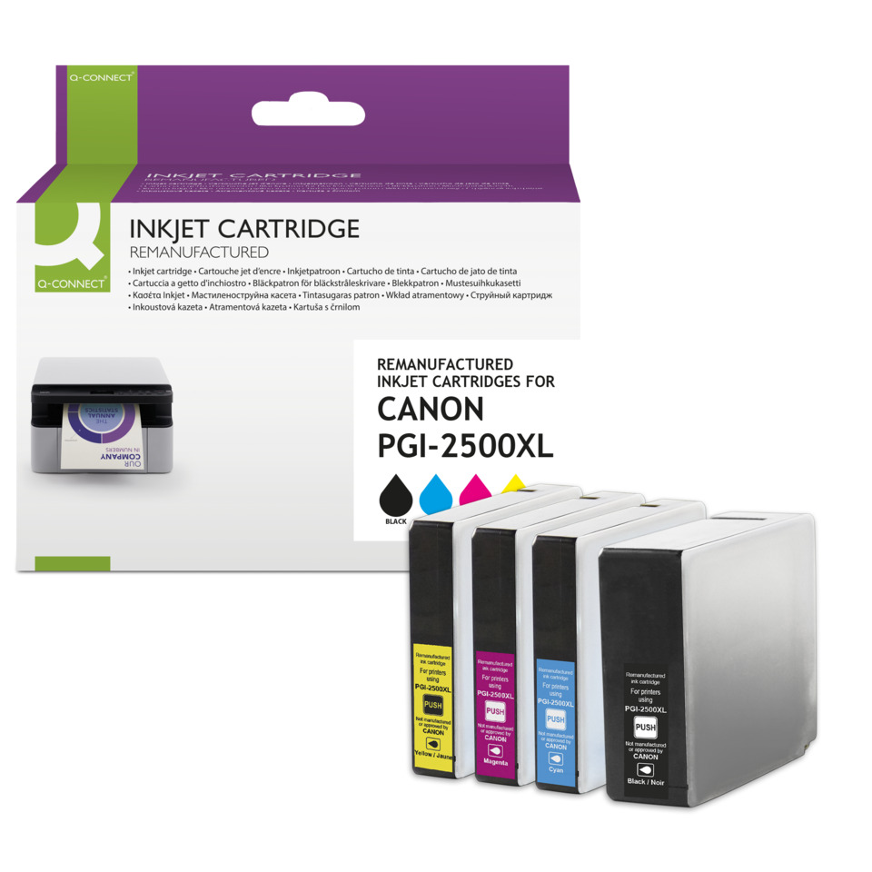 Produkttyp: Alternativ rebuild, Produktart: Tintenpatrone, VE: 4 Stück, Ersetzt: PGI-2500XLBKCMY (9254B004), Farbe: schwarz cyan magenta gelb, Maxify iB 4000 SERIES,4050,4100 SERIES,4150,Maxify MB 5000 SERIES,5050, 5100 SERIES,5150,5155,5300 SERIES,5350,5400 SERIES,5450,5455