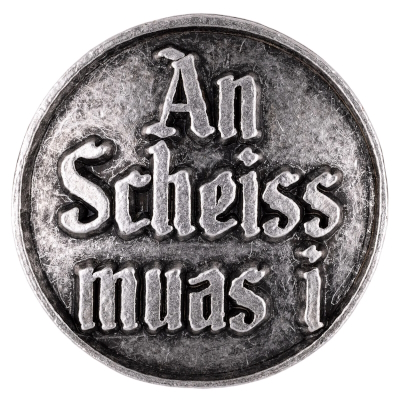 Anstecker 26mm An Scheiss muas i Farbe altsilber, Tradition