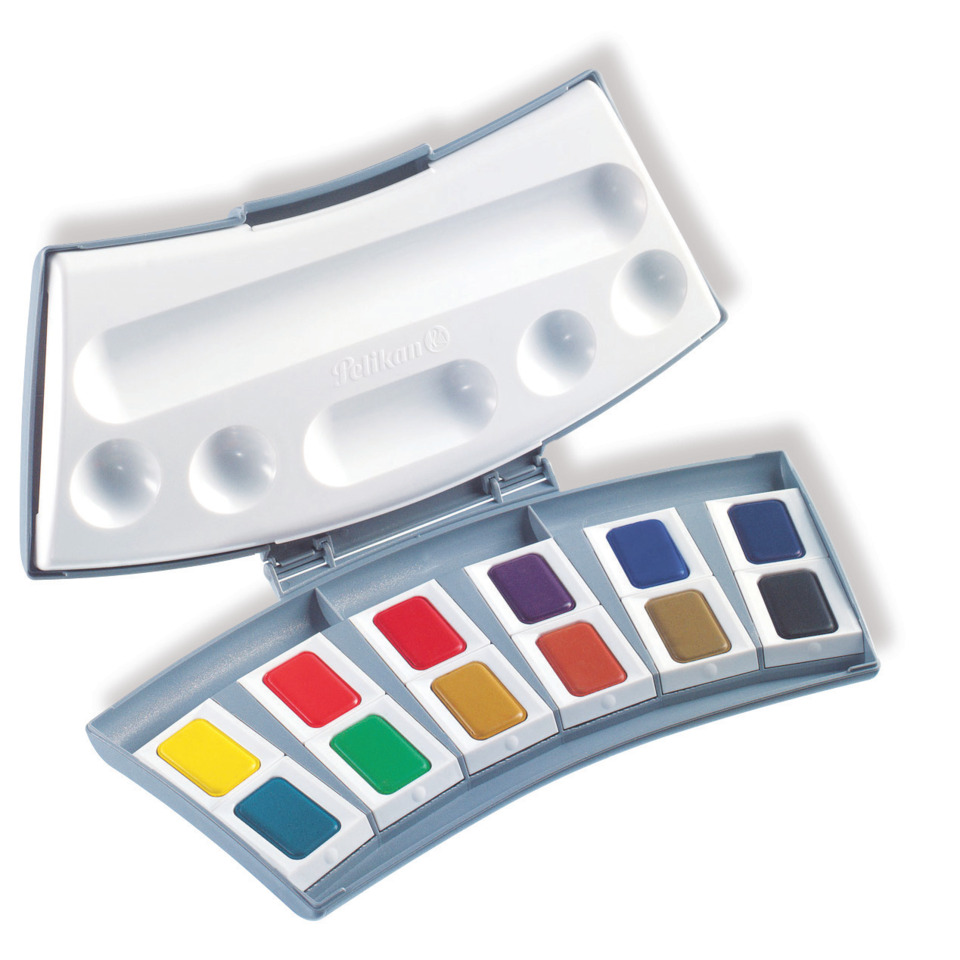 Aquarell-Malkasten 725D/12 · Ausführung des Behälters: Farbnapf · Künstlerqualität gegeben · 2 Wasserboxen und Mischpalette · Anzahl der Farben: 12 Stück · Farbe: 12 Qualitätsfarben · Ausführung des Inhalts mit Packung: Kunststoffkasten mit 12 Farben