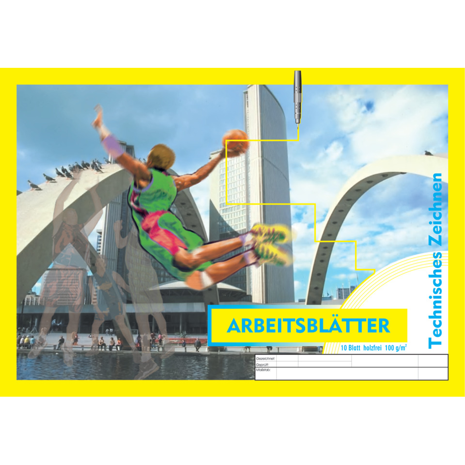 Arbeitsblock mit Arbeitsblättern für technisches Zeichnen 100g/qm, weiß, DIN A3, 10 Blatt