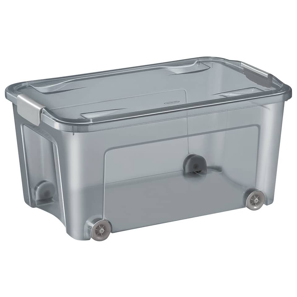 Transparenz in Rauchgrau erlaubt direkten Einblick. Hochwertige Ausführung. Mit Clipverschlüssen und Deckel. Schützt den Inhalt vor Staub & Feuchtigkeit. Ineinander und aufeinander stapelbar. Auf dem Deckel sind Aussparungen für die Rollen vorgesehen, wenn Sie die Boxen stapeln wollen. Farbe: transparent Rauchgrau. Material: aus recyceltem PP (Ausser Clipverschlüsse) 100% recyclebar. Abmessungen: 59,3 x 38 x H 29 cm. Innenmasse: 43 x 26 x H 26cm. Gewicht: 1,410 kg. In 4 Inhaltsvolumen lieferbar: 13L-18L-43L-67L.