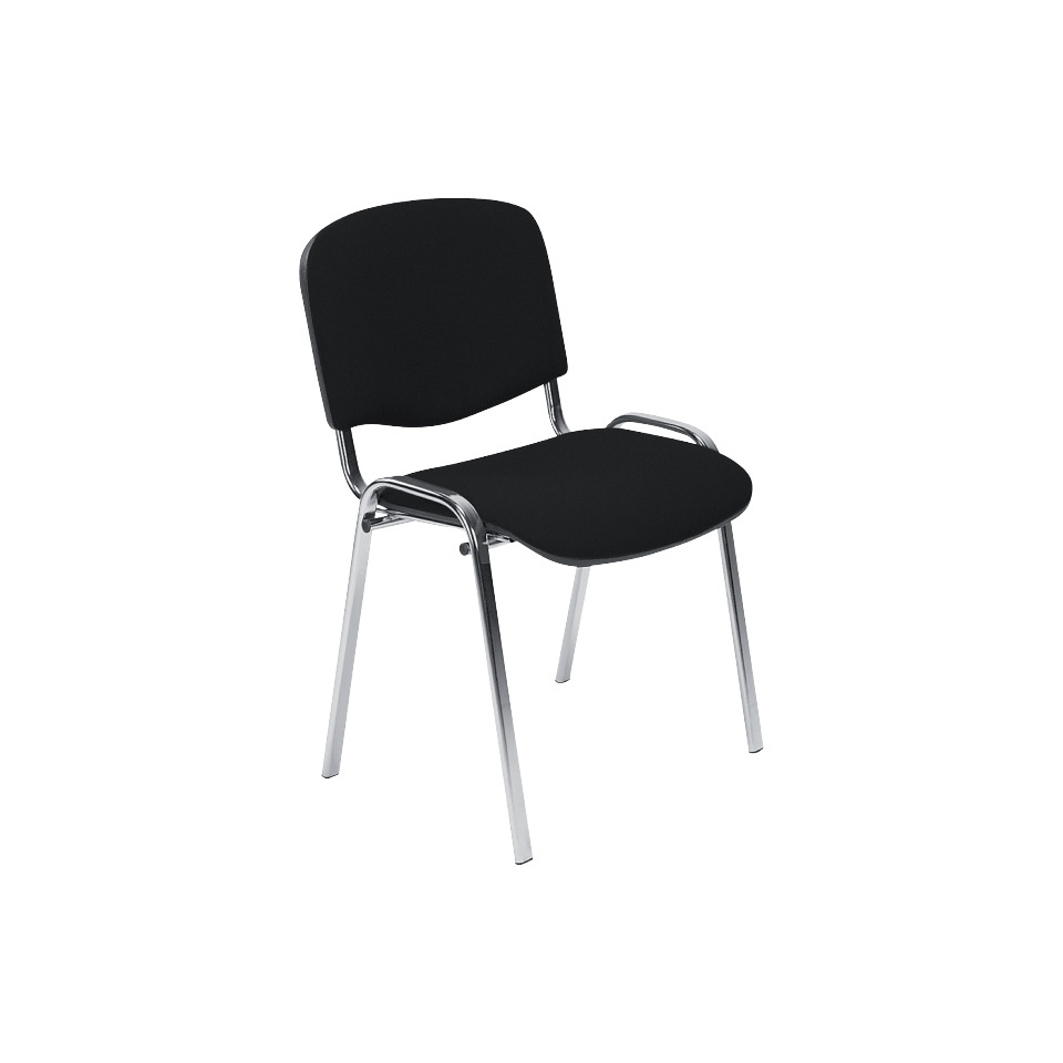 Besuchersessel aus stabilem Stahl-Rundrohr, verchromtes Vierfußgestell, Stuhl ist stapelbar (10-12 Stühle pro Stapel). Bequemer Flachsitz Standard-Rückenlehne Sitzhöhe 47 cm, Sitzbreite 54,5 cm, Sitztiefe 42,5 cm. Geeignet bis 110 kg Körpergewicht geeignet Anlieferung fertig montiert im Karton. Sitzfläche und Rückenlehne gepolstert mit Stoffbezug 100 % Synthetik. Rückenlehnenhöhe 35 cm. Gesamthöhe: 82,0cm. Ausführung: Besucherstuhl ISO CR ohne Armlehnen Farbe: schwarz