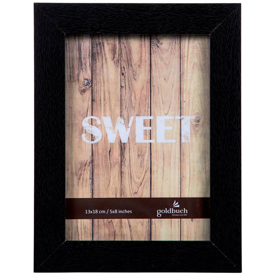 Fotorahmen „Dream schwarz“ aus Kunststoff für 1 Foto. Farbe: natur. Glas: Klarglas, gewaschen. Material: Kunststoff in Holzoptik. Rückwand: mit Aufhänger/ Aufsteller für Hoch- und Querformat. Bildformat: 13 x 18 cm. Rahmengröße: 17 x 22 x 2 cm.
