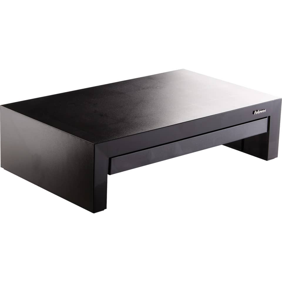 Nackenschmerzen lindern durch Erhöhung Ihres Monitors mit dem Designer Suites Monitor Ständer. In drei Höhen um bis zu 4 cm verstellbar für die perfekte persönliche Einstellung. Modernes, schickes Design geeignet für Widescreen Monitore. Integriertes Aufbewahrungsfach für Stifte & Co. Spezifikationen: ca. max. Monitorgröße: 53,34cm (21″). Max. Monitorgewicht: 18 kg. Höheneinstellungen: 11 / 13 / 15cm.