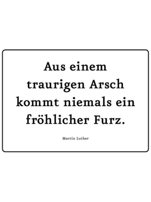 Blechpostkarte mit Spruch: Maße: 10,5 x 14,8 cm Aus einem traurigen Arsch kommt niemals ein fröhlicher Furz. Martin Luther Blechpostkarte fröhlicher Furz