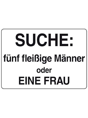 Blechpostkarte mit Spruch: Maße: 10,5 x 14,8 cm SUCHE: fürnf fleißige Männer oder EINE FRAU Blechpostkarte Suche