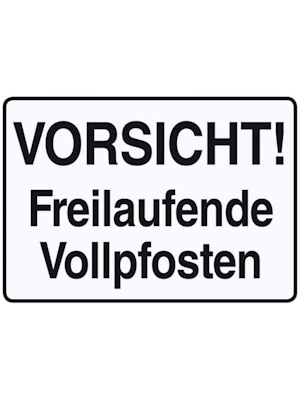 Blechpostkarte mit Spruch: Maße: 10,5 x 14,8 cm Vorsicht! Freilaufende Vollpfosten Blechpostkarte Vorsicht!