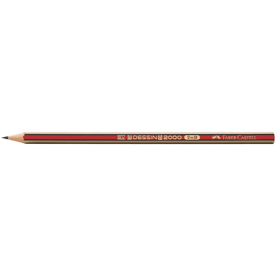 Bleistift DESSIN® 2001 mit Radierer. Ausführung der Schaftform: Sechseckform. Gespitzt. Schaft lackiert. Mehrfarbig lackiert mit bruchgeschützter Mine durch Spezialverleimung. Härtegradkennzeichnung vorhanden. Länge: 175 mm. Farbe des Schaftes: rot-gold-gestreift. Bezeichnung der Härte: HB.