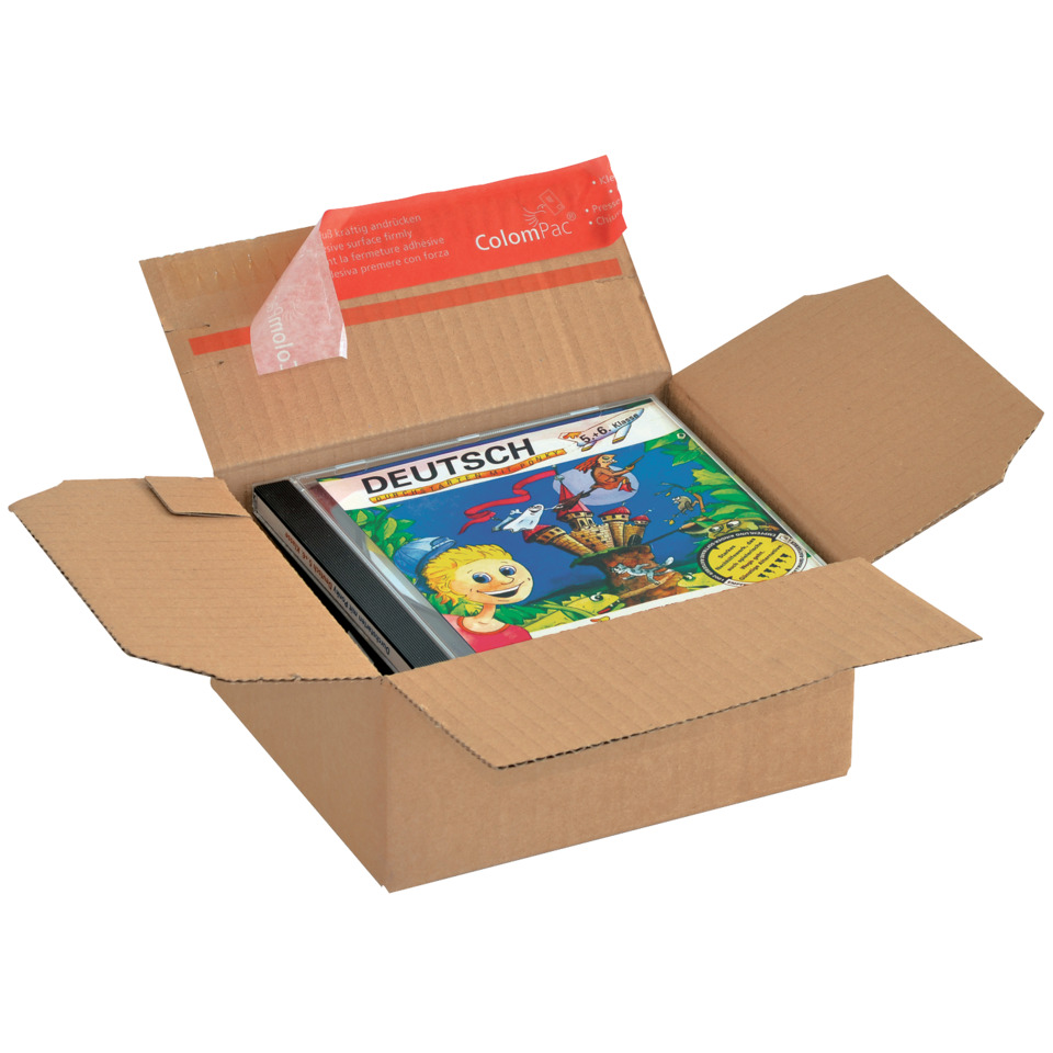 Innengröße: 159x129x70mm, Außengröße: 164x139x80mm, Überlappender Automatik-Boden (Blitzboden). Sicherer ColomPac Selbstklebeverschluss spart Zeit. Kein zusätzliches Falten oder Verkleben nötig. Aufreißfaden für schnelles und einfaches Öffnen. Lieferung flach liegend.