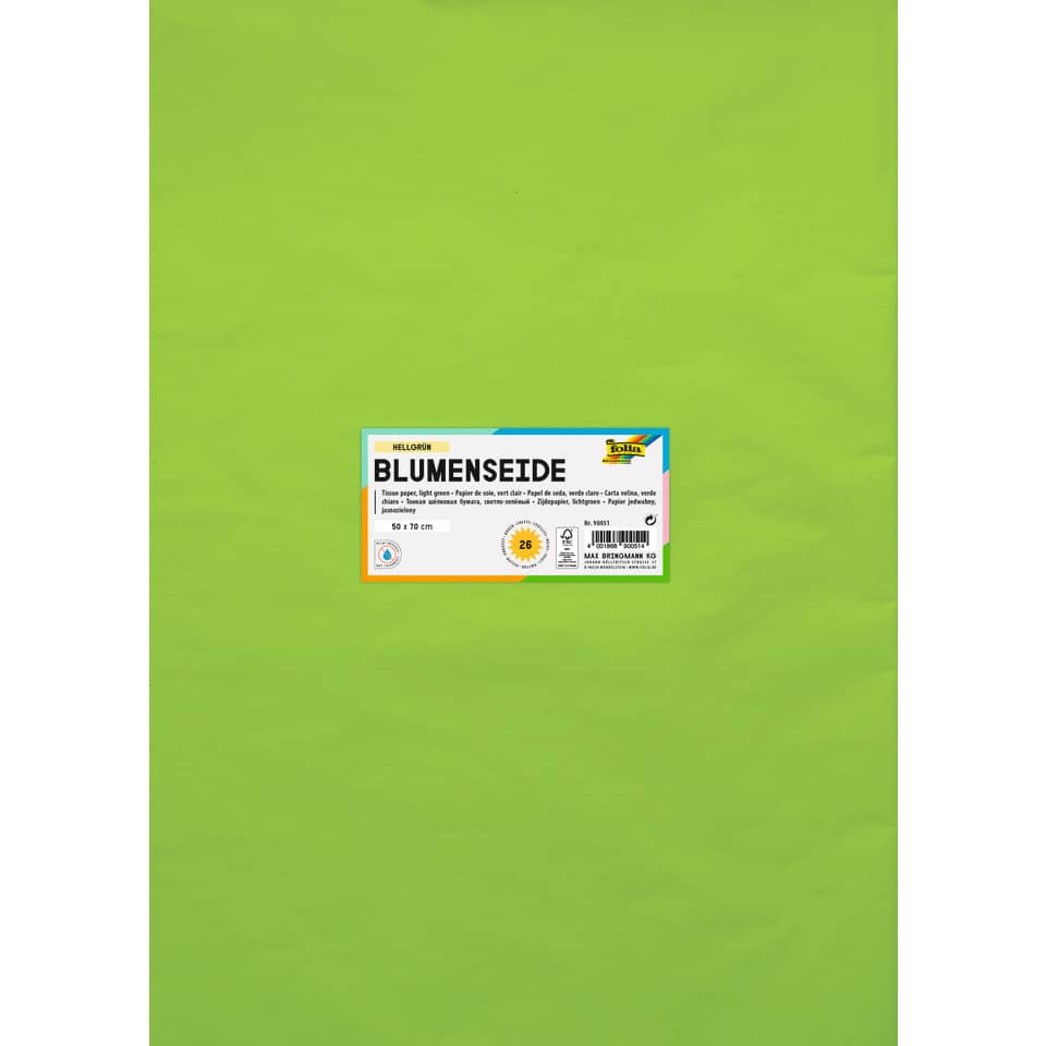 Blumenseide ist universell für viele Bastel- und Deko-Techniken einsetzbar und eignet sich für viele Bastelarbeiten wie z.B. Papier-Pompons, Applikationen oder als Geschenkpapier. Ideal in Verbindung mit Tapetenkleister oder Serviettenkleber für Laternen und Windlichter. Seidenpapier wird auch in Acrylbilder und andere Collagen mit eingearbeitet. Feinstes Seidenpapier (20g/qm) ist weich, leuchtend und farbintensiv.