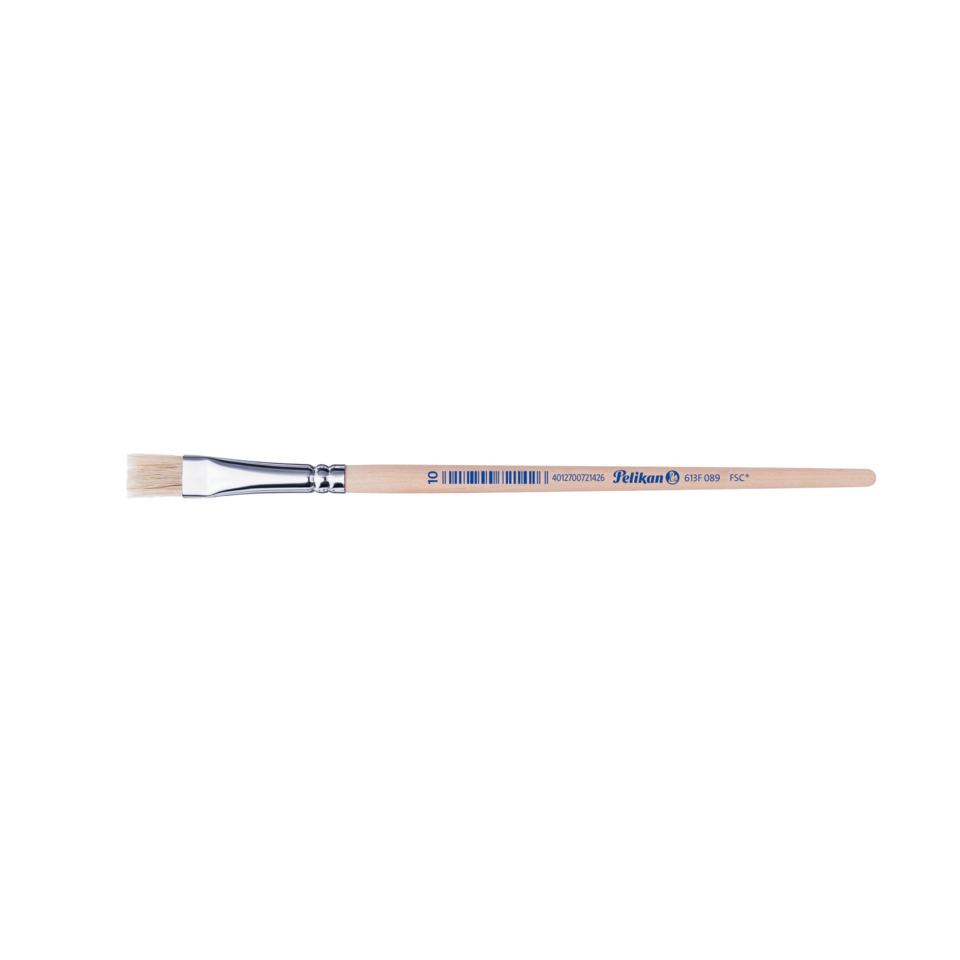 Borstenpinsel Pinsel Sorte 613F · Produktverwendung: Deck- und Temperafarben · Ausführung des Pinselhaares: reine Schweinsborsten · Material der Pinselzwinge: Aluminium · nahtlos Pinselzwinge vorhanden · Pinselform und Farbe: kurz/flach, naturbelassener · Typnummer des Pinsels: 10