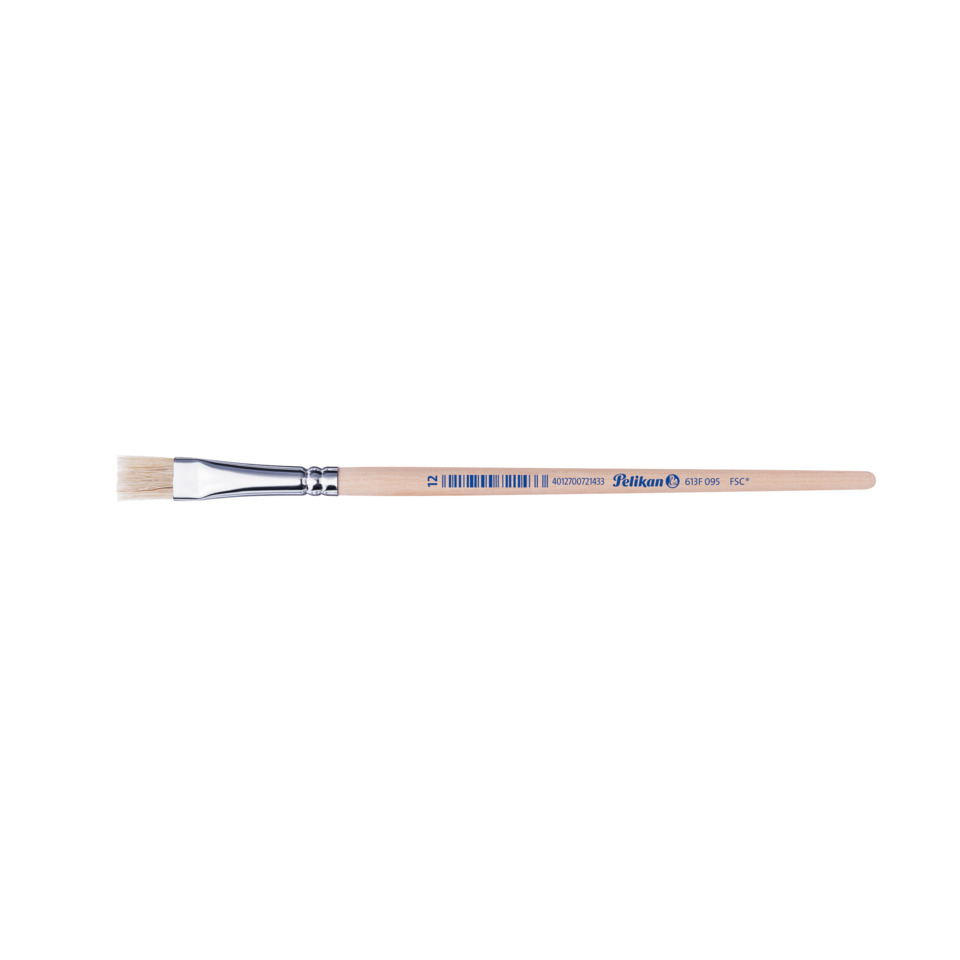 Borstenpinsel Pinsel Sorte 613F · Produktverwendung: Deck- und Temperafarben · Ausführung des Pinselhaares: reine Schweinsborsten · Material der Pinselzwinge: Aluminium · nahtlos Pinselzwinge vorhanden · Pinselform und Farbe: kurz/flach, naturbelassener · Typnummer des Pinsels: 12