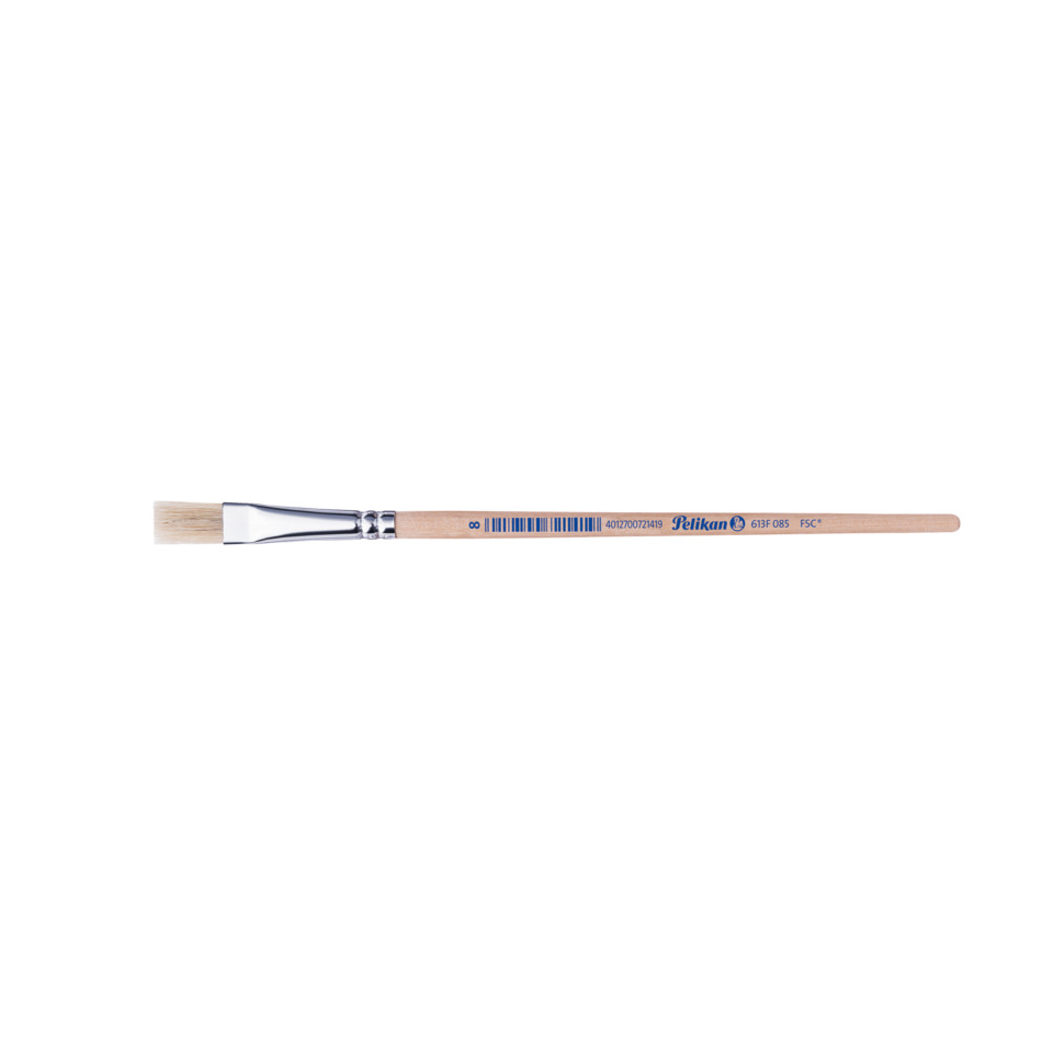 Borstenpinsel Pinsel Sorte 613F · Produktverwendung: Deck- und Temperafarben · Ausführung des Pinselhaares: reine Schweinsborsten · Material der Pinselzwinge: Aluminium · nahtlos Pinselzwinge vorhanden · Pinselform und Farbe: kurz/flach, naturbelassener · Typnummer des Pinsels: 8
