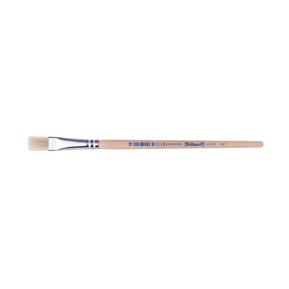 Borstenpinsel Sorte 613F · für Deck- und Temperafarben · reine Schweinsborsten · nahtlose Aluminiumzwinge · kurze Quaste, naturbelassener Holzstiel · Pinselgröße: 18