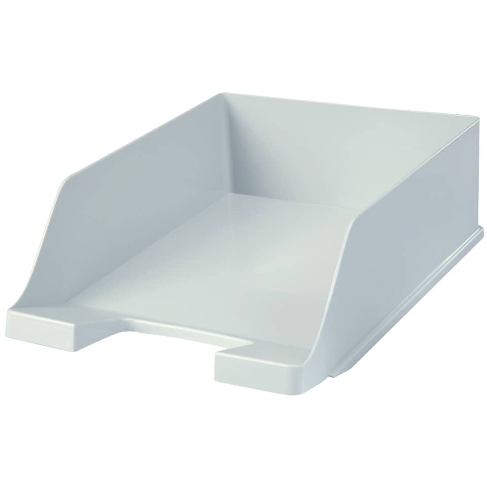 Briefablage KLASSIK XXL, DIN A4/C4. Hochwertige Briefablage in Premium-Qualität. In hochglänzender Optik. In eleganter, extra hoher Ausführung. Senkrecht oder versetzt stapelbar. Mit breitem Greifausschnitt für leichte Orientierung und optimalen Zugriff auf die Unterlagen. Die leicht angeschrägte Vorderfront der Briefablage verhindert ein Herausrutschen der Dokumente. Ideal zur Verwendung in Schränken, kompatibel zu allen gängigen Briefablagen. Platz für Beschriftungsclip 1021. Verwendung für Papierformate: DIN A4/C4. Made in Germany. Außenmaße (B x T x H): 255 x 348 x 105 mm. Material: hochwertiger Kunststoff, Polystyrol (PS). Farbe: lichtgrau.