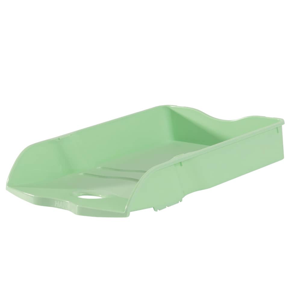 Briefablage HAN Re-LOOP, DIN A4/C4. Nachhaltige Briefablage aus qualitativ hochwertigem, recyceltem Kunststoff, im formschönen Design. Ergonomische Form für angenehmes Arbeiten in Büro, Schule und Freizeit. Hohe Stabilität garantiert. Senkrecht oder versetzt stapelbar und nestbar. Mit breitem Greifausschnitt für leichte Orientierung und optimalen Zugriff auf die Unterlagen. Die leicht angeschrägte Vorderfront der Briefablage verhindert ein Herausrutschen der Dokumente. Verwendung für Papierformate: DIN A4/C4. Die Briefablage HAN Re-LOOP ist umweltfreundlich und hilft somit wertvolle Ressourcen zu sparen. Made in Germany. Außenmaße (B x T x H): 259 x 351 x 63 mm. Material: 100% PIR-Kunststoff Rezyklat (PP). Farbe: pastellgrün.