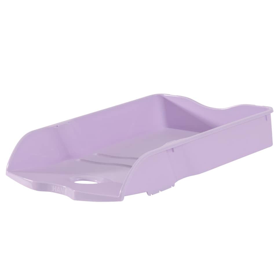 Briefablage HAN Re-LOOP, DIN A4/C4. Nachhaltige Briefablage aus qualitativ hochwertigem, recyceltem Kunststoff, im formschönen Design. Ergonomische Form für angenehmes Arbeiten in Büro, Schule und Freizeit. Hohe Stabilität garantiert. Senkrecht oder versetzt stapelbar und nestbar. Mit breitem Greifausschnitt für leichte Orientierung und optimalen Zugriff auf die Unterlagen. Die leicht angeschrägte Vorderfront der Briefablage verhindert ein Herausrutschen der Dokumente. Verwendung für Papierformate: DIN A4/C4. Die Briefablage HAN Re-LOOP ist umweltfreundlich und hilft somit wertvolle Ressourcen zu sparen. Made in Germany. Außenmaße (B x T x H): 259 x 351 x 63 mm. Material: 100% PIR-Kunststoff Rezyklat (PP). Farbe: pastelllila.