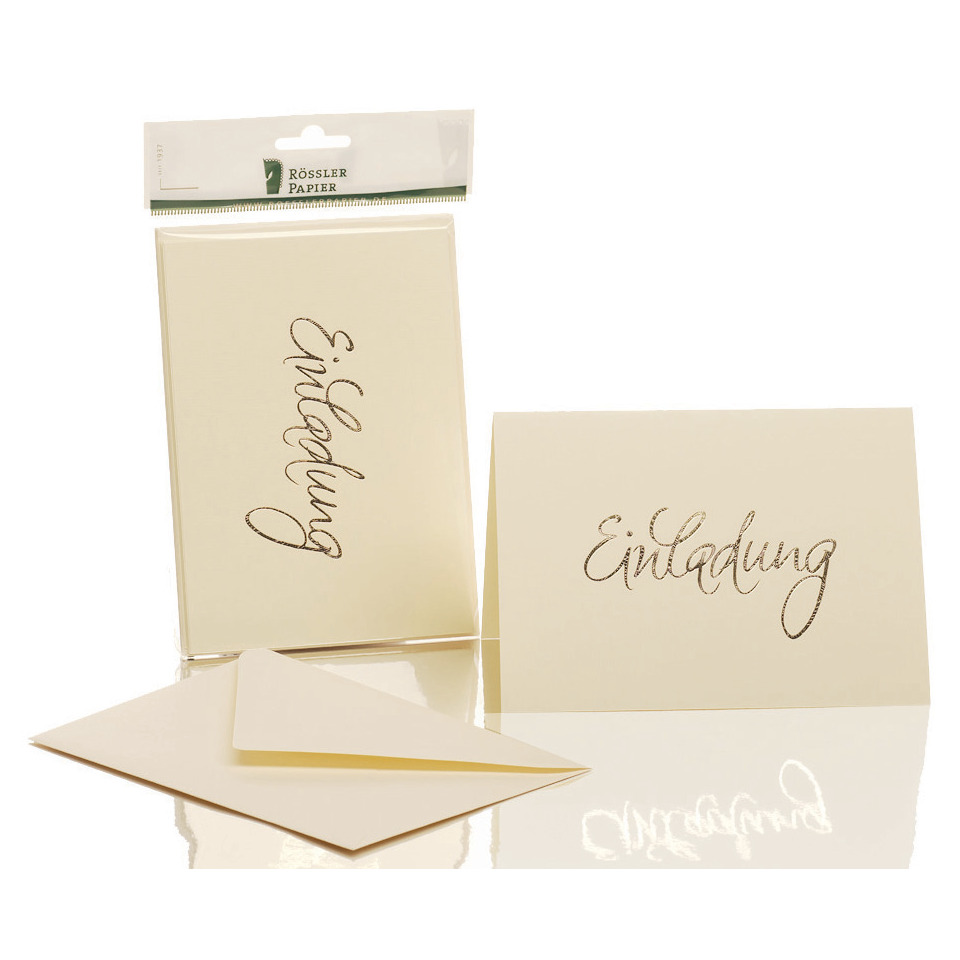 Die Karte mit dem gewissen Etwas. Laden Sie Ihre Freunde und Bekannte mit dieser hochwertigen Karte ein. Jede Karte ist mit Heißfolienprägung veredelt und trägt den Schriftzug „Einladung“. 5 Stück B6 Karten im HD (hoch/doppelt) Format mit passendem Briefumschlag. (hoch/doppelt) mit passendem Briefumschlag.
