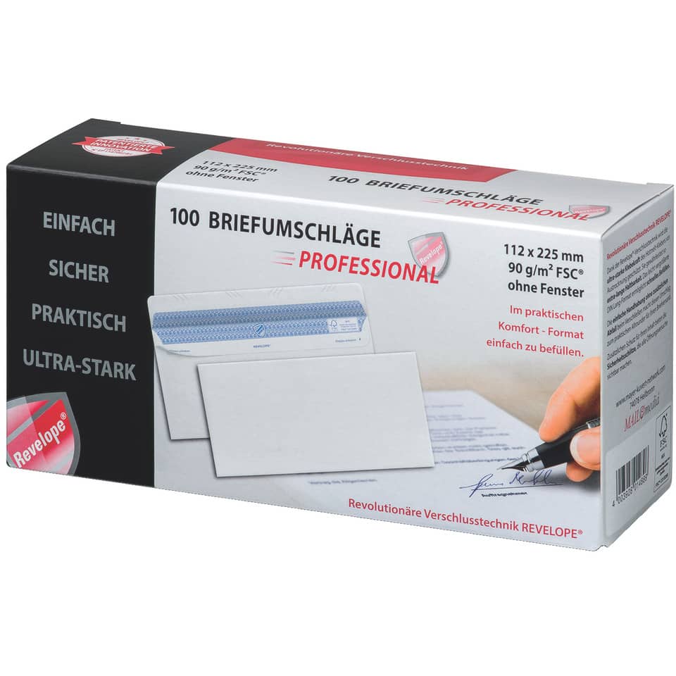 Das umweltfreundliche Haftklebewunder ohne Abziehstreifen mit patentierter Revelope-Klebung. Ein Sicherheits-Innendruck garantiert einen perfekten Blickschutz beim Versand, die Sicherheitsschlitze machen Manipulationen an der Verschlussklappe sichtbar. Briefumschlag ohne Fenster. Format: 112x225mm. Offset-Papier: weiß, 90 g/qm. Revelope-Klebung, Verpackung á 100 Stück.