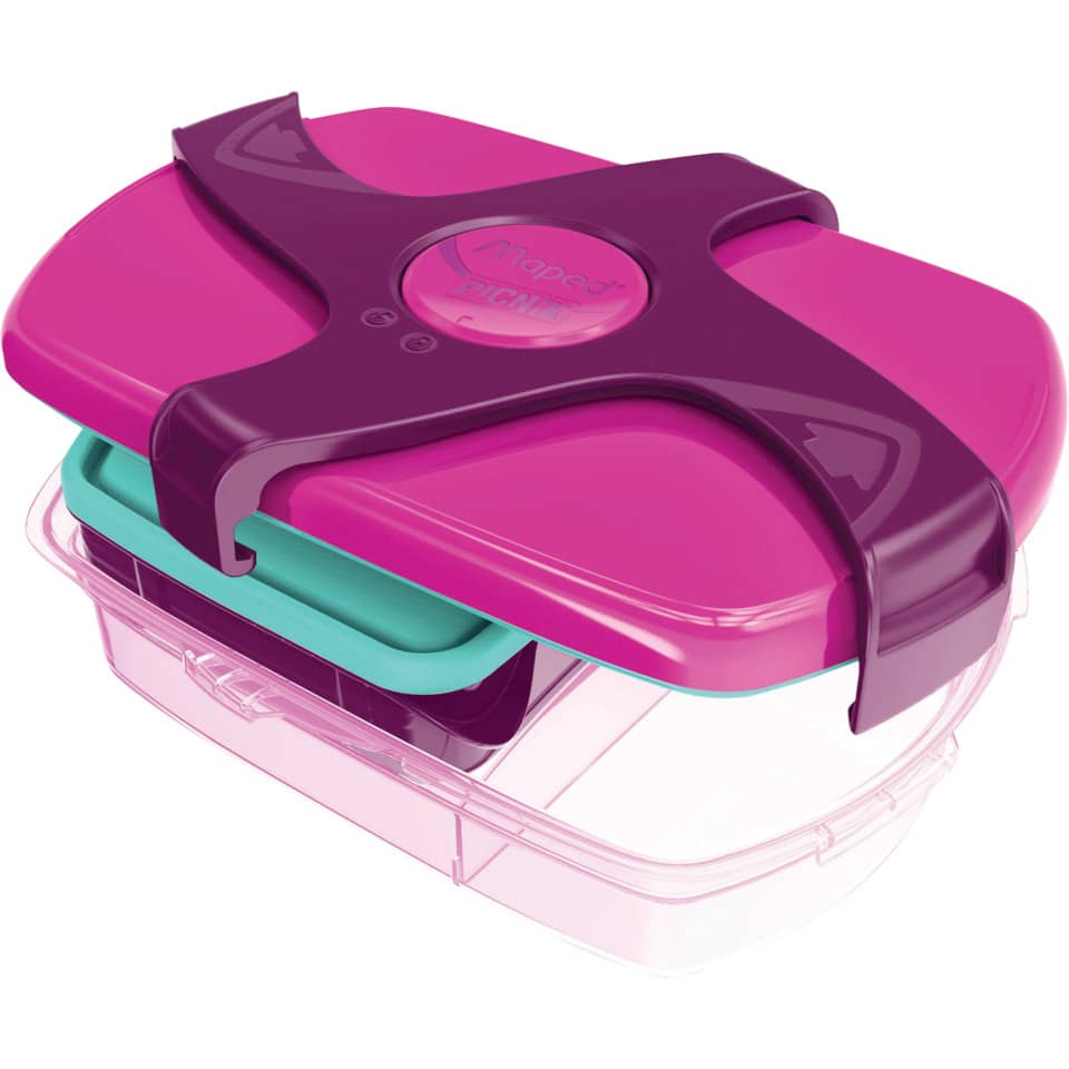 Lunch Box Kids CONCEPT pink. 100% auslaufsicher, Außen-Dichtung auf dem Deckel, herausnehmbarer Behälter mit Deckel, 3 Fächer, Öffnen durch eine Drehbewegung, abnehmbarer Drehverschluss, BPA-frei. Werkstoff: PP/ABS/Silikon. Größe (B x H x T): 253 x 80 x 188 mm mm. Farbe/Motiv: pink.