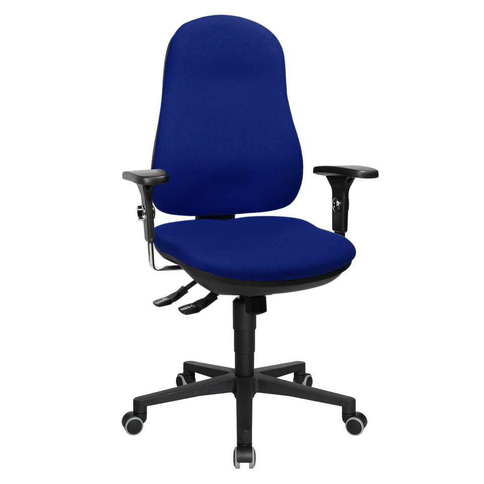 Ergonomische Rückenlehne, in der Höhe und Neigung stufenlos über Rastermechanik verstellbar. Synchronmechanik zur synchronen Verstellung von Sitz- und Rückenneigung mit Federkrafteinstellung. Spezial-Bandscheibensitz. Stufenlose Sitzhöhenverstellung. Stabiles Fußkreuz in schwarz. Sicherheitsdoppelrollen für Teppichboden. Bezugsstoff: 100 % Polypropylen. Sitzbreite: 45 cm, Sitztiefe: 46 cm, Sitzhöhe: 42-55 cm, Lehnenhöhe: 52 cm. Getestet bis 110 Kilogramm.