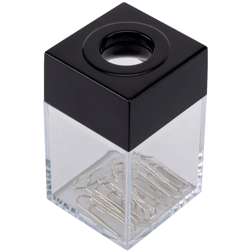 Magnetischer Behälter für Büroklammern. Aus Kunststoff. Größe: 42 x 42 x 70 mm. Ohne Klammern.