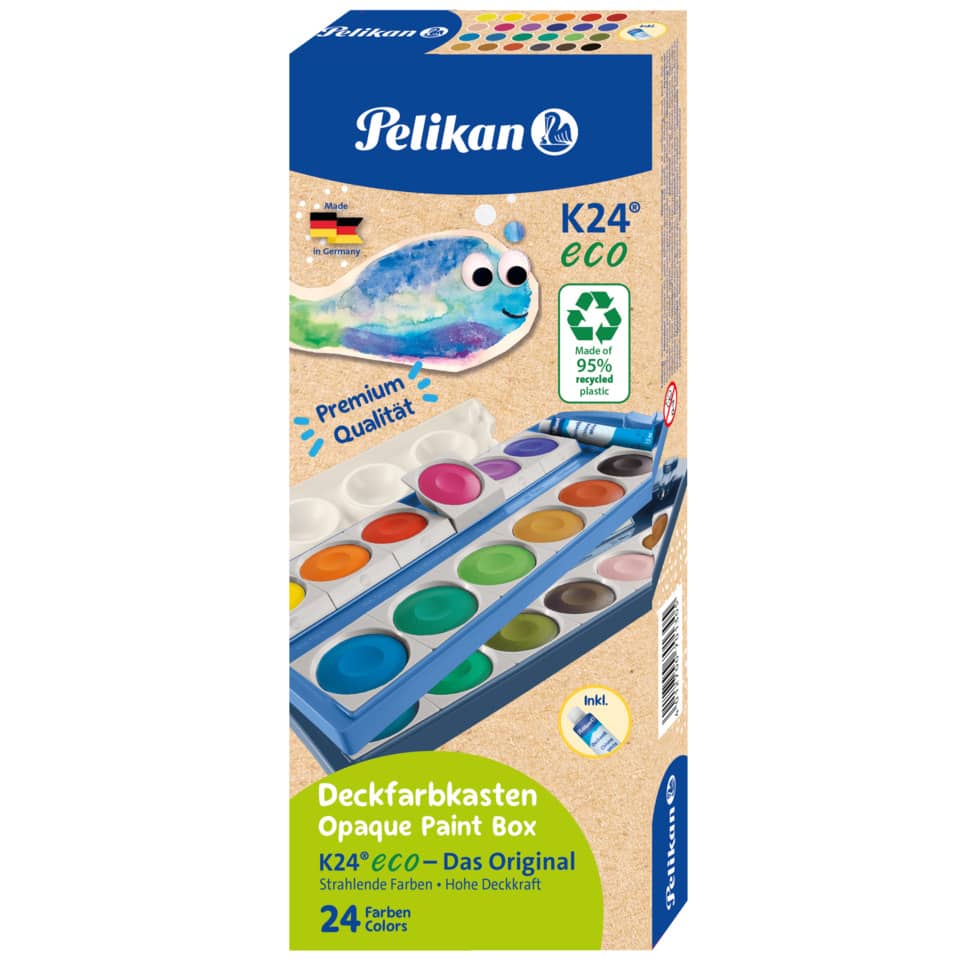Unterstützt die lehrplangerechte Farbenlehre, 24 Farben, starke Deckkraft, gute Haftung, lichtechte Pigmente, auswechselbare Farbschälchen, abnehmbarer Deckel mit 8 Mischfeldern. Alle Kunststoff-Teile bestehen zu mindestens 95 % aus Post-Consumer- Recycling-Material, inklusive wasserfestem Namensetikett. Inhalt: 24 Farben, 1 x Deckweiß ml.