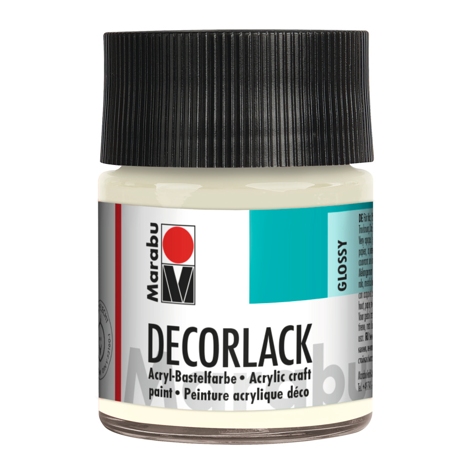 Einer für alles – Lack und Farbe in einem Marabu Decorlack Acryl ist der ideale, gebrauchsfertige und hochglänzende Acryllack auf Wasserbasis für Schule, Hobby, Freizeit, Kunstgewerbe. Erleben Sie die cremigen Eigenschaften von Marabu Decorlack: die optimierte Qualität garantiert eine sehr angenehme Vermalbarkeit und eine sehr gute Deckkraft. Der hochwertige universelle Acryllack ist wetterfest, speichelfest und lichtecht und besticht durch einen ausgezeichneten Verlauf und außergewöhnliche Farbbrillanz. Hervorragend geeignet zum freien Malen, für die Serviettentechnik, zum Schablonieren, Stempeln sowie für nahezu alle Basteltechniken. Ob auf Holz, Pappe, Papier, selbsthärtenden Modelliermassen, Styropor, Metall, Ton, Stein, Glas, Moosgummi oder Kunststof! Decorlack Acryl vollbringt wahre Glanzleistungen! Alle Farbtöne sind, einschließlich Metallic und Perlmutt, untereinander mischbar und bei Bedarf mit Wasser verdünnbar.