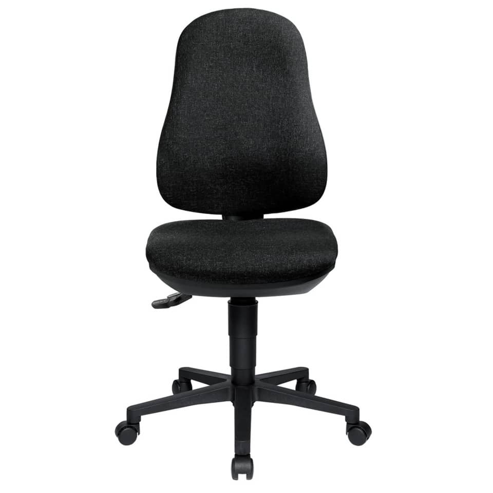 Point 70 – Small-Office Bandscheiben Drehstuhl mit stufenloser Sitzhöhenverstellung mit Toplift. Spezial-Bandscheibensitz zur optimalen Abstützung im Beckenbereich. Hohe, konturgeformte Rückenlehne mit Wirbelsäulenausformung, stufenlos in Höhe und Neigung verstellbar. Komfortable, robuste Permanentkontaktmechanik, stufenlos arretierbar. Formschönes und stabiles Polyamidfußkreuz schwarz, ausgerüstet mit lastabhängig gebremsten Sicherheitsdoppelrollen für Hartböden. Sitzhöhe: 41-53cm, Sitzbreite: 45 cm, Sitztiefe: 45cm, Lehnenhöhe: 57-62 cm, Gesamthöhe: 98-110cm. GS-Zeichen. Stoffbezug: 100% Polypropylen.
