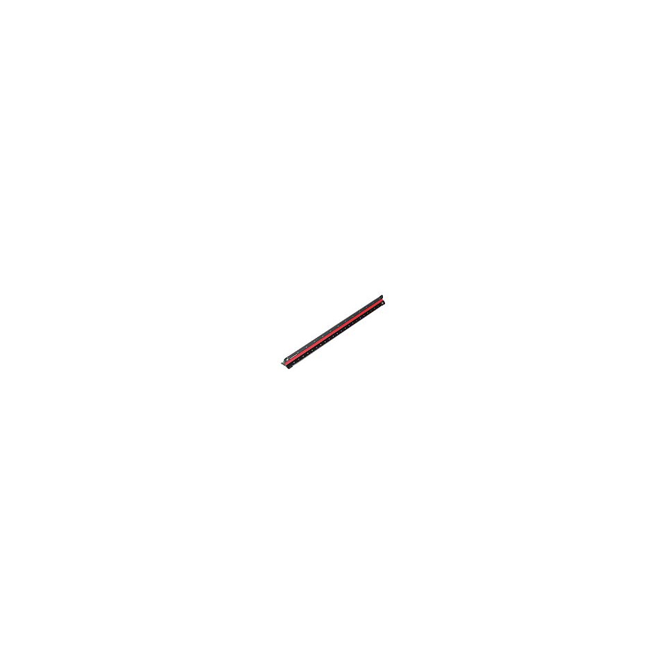 Reduktionsmaßstab aus schwarzem Kunststoff mit drei farbigen Hohlkehlen. mm-Teilungen und markante, große Vorbezifferung. Länge: 30 cm.