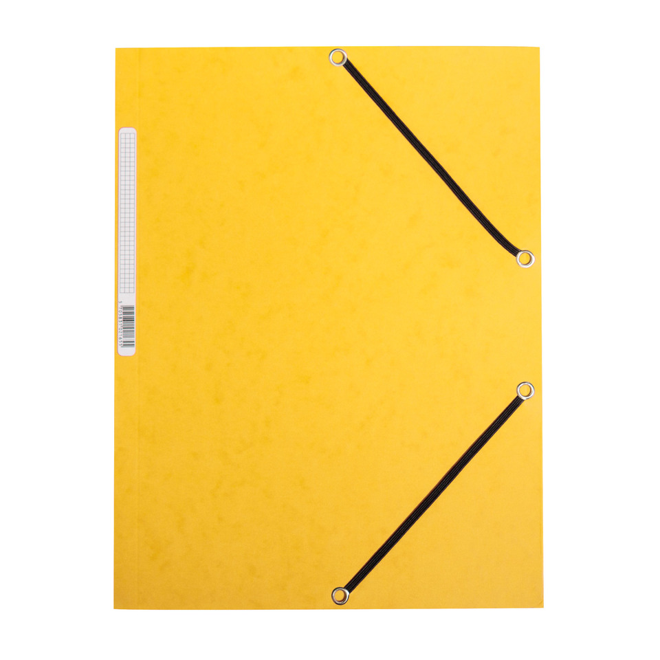 Umschlagmappe aus hochwertigem glatten Manilakarton 375 g/qm in satten Farben für A4. Mit Gummizug über beide offene Ecken und Beschriftungsschild 8 x 1 cm am elastischen Rücken. Für ca. 200 Blatt Schriftgut. Format 32 x 24,3 cm. Farbe gelb
