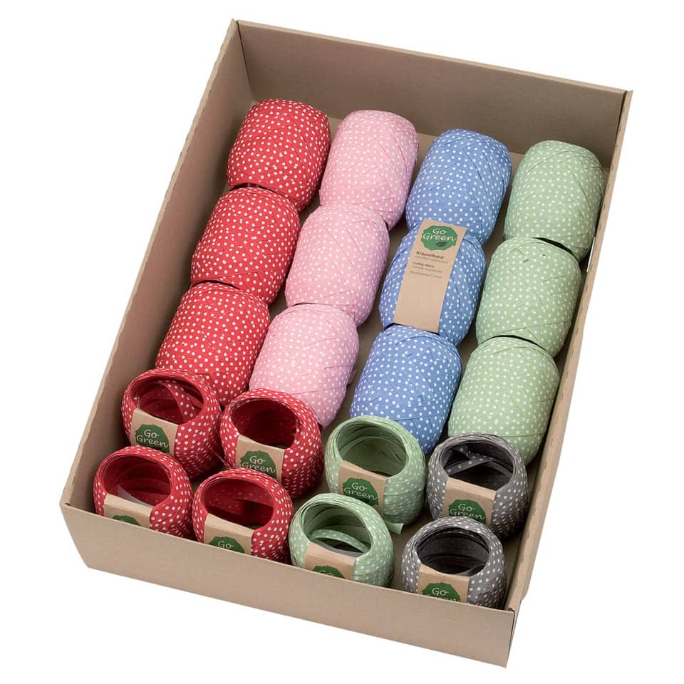 Mit diesen Geschenksband können Sie Ihren Geschenken das gewisse etwas verleihen. Baumwolle, biologisch abbaubar, 5 Farben sortiert, 10 mm-12 m.