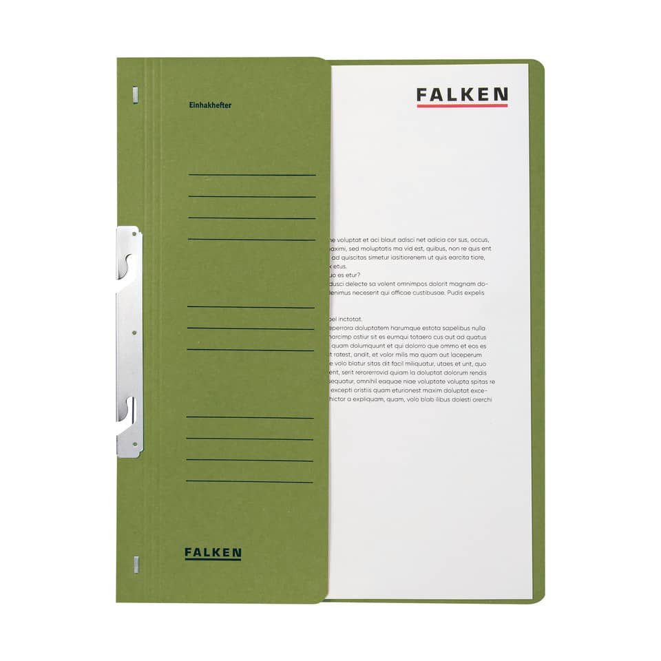 Einhakhefter A4 1/2 Vorderdeckel. Art der Heftung: kaufmännische Heftung. Ausstattung: halb, Abheftvorrichtung vorhanden, Organisationsaufdruck vorhanden. Werkstoff: Manilakarton. Papiergewicht bzw Stärke: 250 g/qm. Verwendung für Papierformate: A4. Größe (B x H): 240 x 305 mm. Farbe: Grün. Blauer Engel.