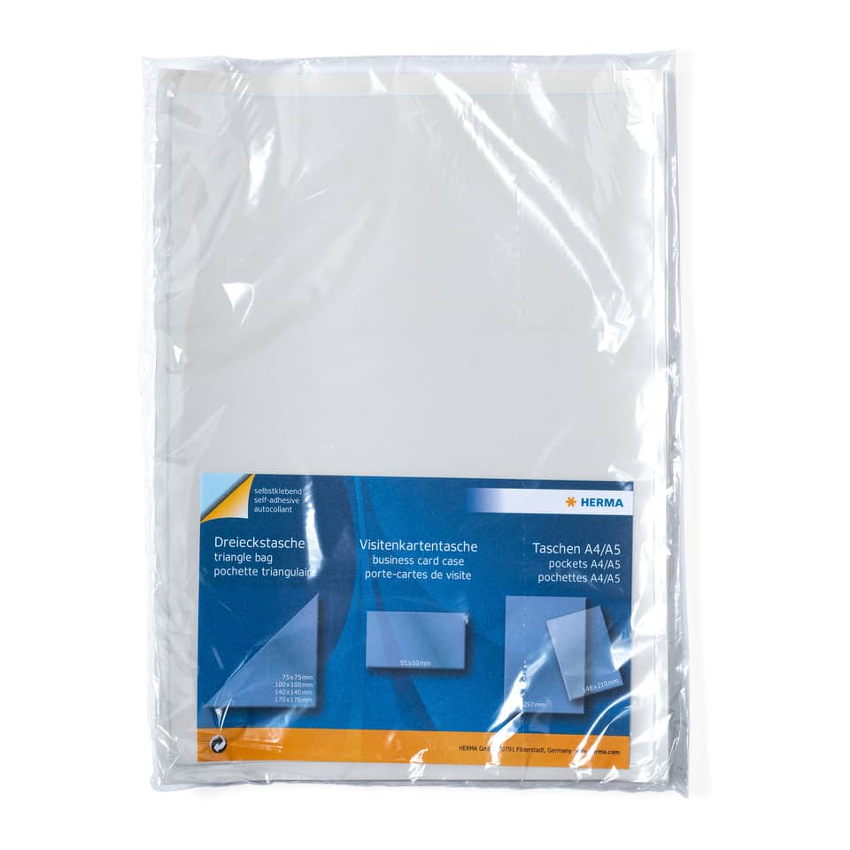 Selbstklebende Tasche für DIN A4 Formate, Das praktische Extra-Fach für Ordner und Mappen, aus tranparenter glasklarer Polypropylen-Folie, 210 x 297 mm, ideal für größere Dokumente, einfach anzubringen, selbstklebend und sicher haftend
